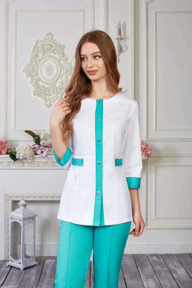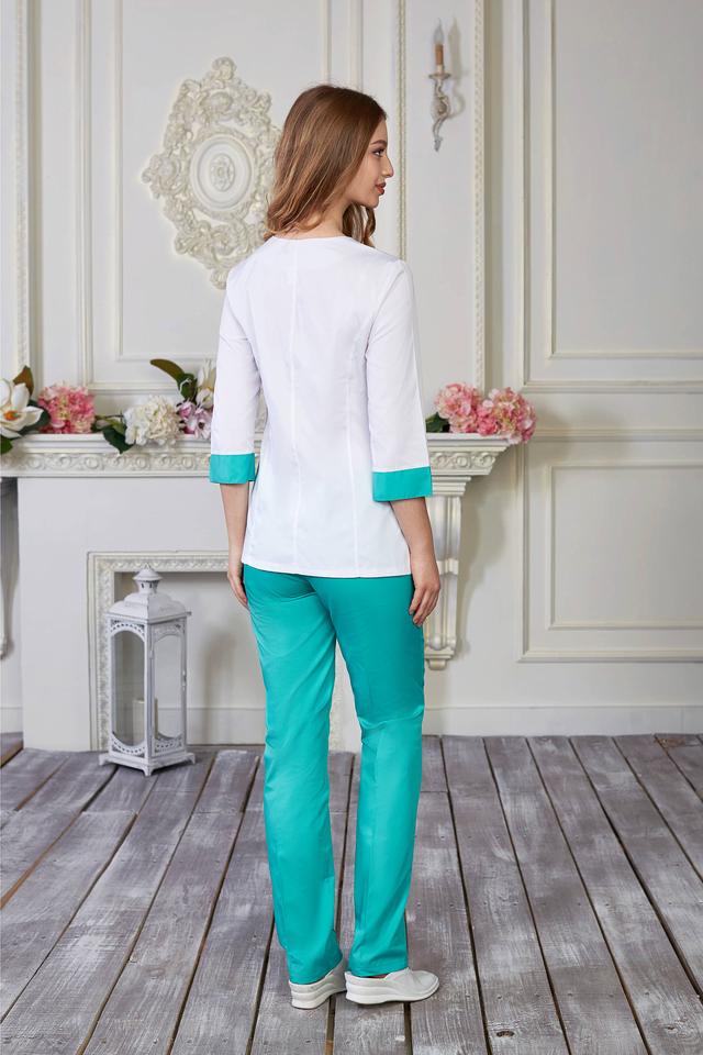 Жіночий медичний костюм Валерія білий з бірюзою - Костюм косметолога