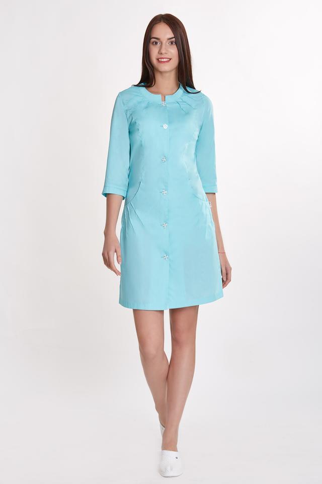 Жіночий медичний халат Софія з круглим вирізом, рукав 3/4, дві кишені, центральна застібка на ґудзиках.